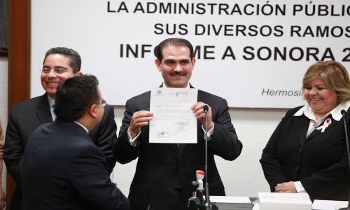 La legisladora dijo que con la entrega de este documento, que guarda las acciones del Gobierno del Estado en sus diversos ramos, Padrés Elías cumple con lo dispuesto en los artículos 46 y 79, fracción VIII, de la Constitución local.