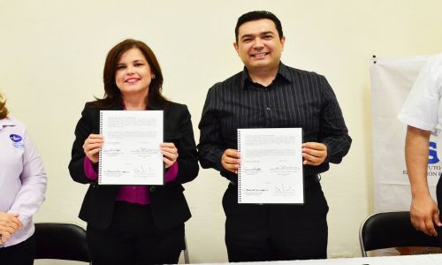 Eduardo Romero Campa, Director General de ISEA y María del Carmen Guadalupe Peralta Johnson, Presidenta del Centro de Formación para la Mujer, suscribieron un convenio de colaboración, y entrega de reconocimiento CONEVyT como “Organización Comprometida con la Educación de sus Agremiados” consolidando con ello los esfuerzos por acercar los servicios de educación abierta.