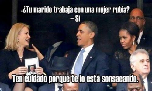 Durante el el funeral y homenaje a Nelson Mandela, Barack Obama jugueteó con Helle Thorning-Schmidt y Michelle no ocultó su molestia.