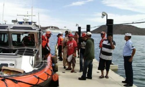 12 de Abril de 2014.- Elementos de la Secretaría de Marina Armada rescataron ayer a 12 personas que tripulaban un buque a pique en Guaymas, Sonora.