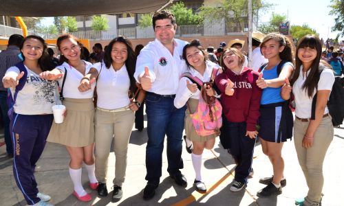 El legislador priísta fue invitado para que asistiera al programa Lunes Cívico que organiza el Ayuntamiento de Nogales en coordinación con escuelas de la ciudad, en donde además el alcalde Ramón Guzmán Muñoz, les anunció otras obras de beneficio para este, uno de las secundarias con mayor población estudiantil.