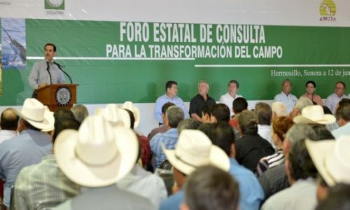 En la inauguración de foro participaron Héctor Ortiz Ciscomani, Secretario de SAGARHPA; Luis Sierra Maldonado, Presidente de la Unión Ganadera Regional de Sonora; Jorge Mazón Salazar, Presidente de la Asociación de Organismos Agrícolas del Norte de Sonora; Manuel Aguilar Juárez, Presidente de la Asociación de Ribereños y Armadores; Ignacio Martínez Tadeo, Presidente de la Confederación Nacional Campesina y Rogelio Méndez Ibarra, Subdelegado Agrario en Sonora.