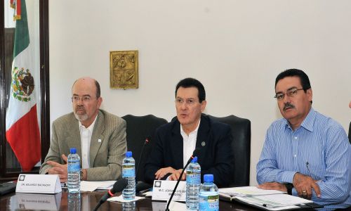 Acompañados del Secretario de Educación y Cultura, Jorge Luis Ibarra Mendivil, el mandatario estatal y Eduardo Backhoof, Consejero del INEE, signaron este convenio en cual se acordó trabajar en conjunto para proponer instrumentos de evaluación e intercambiar ideas para fortalecer el rubro de la educación.