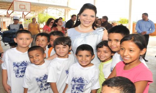 Hermosillo, Sonora, 4 de julio de 2014.- La presidenta del Sistema DIF Hermosillo, Silvia Félix de López Caballero, visitó a los alumnos del Campamento de Verano 2014 “Mundialito CAFV”, en la sede de la colonia Internacional, acompañada por miembros de la ciudad hermana de Phoenix, Arizona, y ex deportistas profesionales, para motivarlos en sus actividades diarias.