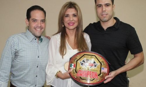En reconocimiento a su impulso al deporte, la senadora Claudia Pavlovich Arellano recibió del campeón internacional de Peleas Extremas categoría 155 libras, el hermosillense José Luis Verdugo Ríos, el cinturón universal que obtuvo tras vencer a Guillermo “Memo” Smith en un encuentro en días pasados en esta capital.