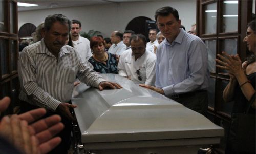 Minutos más tarde se montó guardia de honor por parte de su familia, después sus amigos, compañeros, colegas de El Colson, para después continuar con las palabras de sus hijos, esposa y la rectora, Gabriela Grijalva Monteverde.