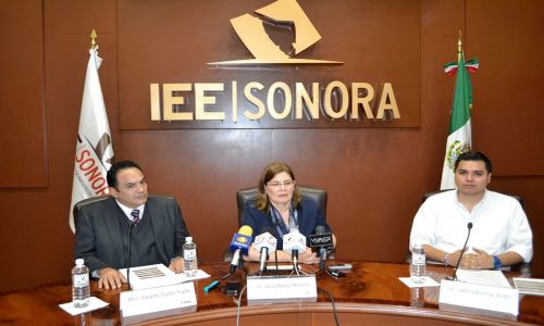Sara Blanco Moreno, presidenta del Instituto Estatal Electoral en compañía del Vocal ejecutivo del INE en Sonora, Manuel Eduardo Trujillo Trujillo y Julio Gutiérrez, titular del Instituto Sonorense de la Juventud, dieron a conocer las actividades de estas Jornadas por la Democracia estarán iniciando del jueves 14 al jueves 21 de agosto.