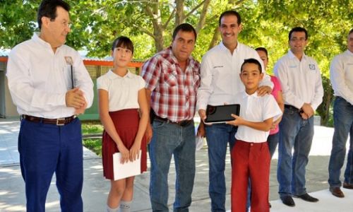 En el marco de este inicio de ciclo, el Gobernador hizo entrega de tablets a estudiantes de primaria de quinto y sexto grado de primaria de este municipio dentro del paquete de 52 mil 629 que se distribuirán en todo el estado.