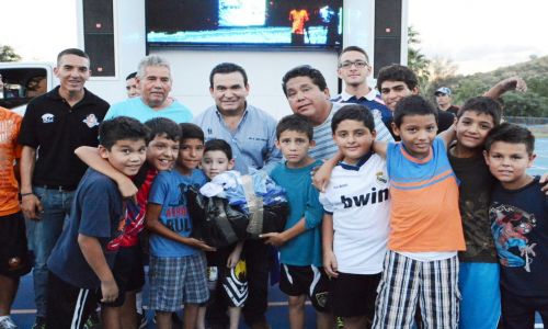 “Quisiera que ustedes correspondieran este apoyo de la Fundación López Caballero con entrega, que lo hagan con pasión, con disciplina, que asistan a los entrenamientos, que hagan caso a sus entrenadores; que dejen el alma en la cancha, pero que también la dejen en su casa portándose bien, en la escuela siendo unos muchachos que atiendan bien a sus maestros y que se preparen bien”, dijo López Caballero.