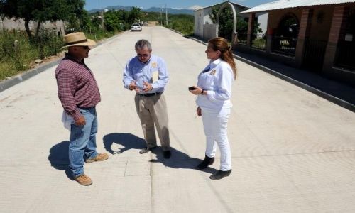 La funcionaria recorrió este lunes los municipios de Banámichi, Huépac y San Felipe de Jesús, donde acompañada por contratistas que llevan a cabo la pavimentación, supervisó las calles que están proceso de pavimentación.