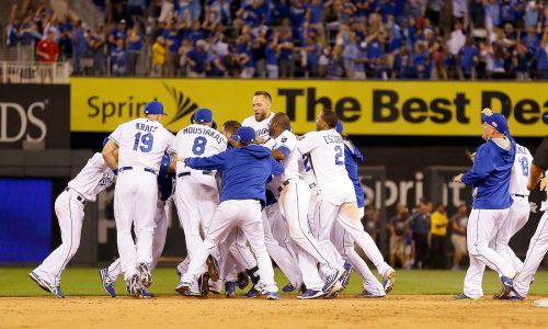 La sufrida franquicia de los Reales había estado ausente de la postemporada desde que derrotó a Cardenales de San Luis en la Serie Mundial de 1985, y la euforia que permea en la ciudad se pudo sintetizar en el mensaje difundido por la policía de Kansas City en Twitter cuando transcurría el décimo inning: “Necesitamos que nadie cometa delitas y conduzca con cuidado ahora. Queremos escuchar que los Reales ganen”.