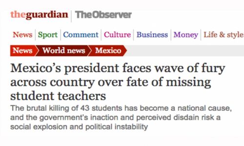 Enrique Peña Nieto “enfrenta oleadas de furia por todo el país por el destino de los estudiantes desaparecidos”, señala un duro texto publicado este domingo por The Guardian.