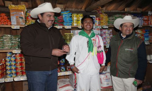 Acompañado por empleados de la paraestatal y pobladores de San Francisco del Mezquital, Velasco Monroy recorrió el almacén rural La Guajolota, mismo que suministra alimentos con alto valor nutricional a 62 establecimientos que prestan servicio a tepehuanos y huicholes, grupos indígenas asentados en la Sierra Madre Occidental.