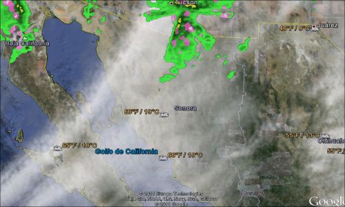 Sobre las temperaturas máximas se informa que se presentaron de 28°C en Ciudad Obregón y en San Bernardo, 27.0 en Vícam, 26.5 en Navojoa, 26.0 en Tezocoma, 25.3 en Empalme, 25.0 en la presa A.R. Cortines.