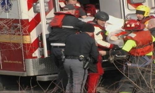 A través de YouTube, la agencia de noticias AP difundió un video en el que se ve a medio centenar de policías, bomberos y personal de rescate en el lugar del incidente con equipo y botes de salvamento, mientras llevan a cabo el rescate de los cuatro jóvenes.
