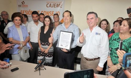 Ciudad Obregón, Sonora a 26 de marzo de 2015.- Comprometidos a realizar una campaña propositiva y de cercanía con la gente por la unidad de sus municipios, en la que no tendrá cabida la descalificación o los ataques, Jesús Félix Holguín y Lorenzo De Cima se registraron este jueves ante la representación del Instituto Estatal Electoral y de Participación Ciudadana como candidatos del PAN para las alcaldías Cajeme y Guaymas respectivamente.
