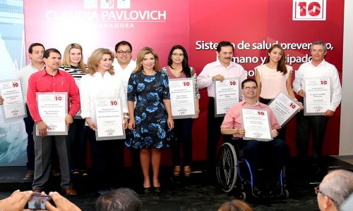 Ante 10 observadores ciudadanos que respaldaron y cuidarán del cumplimiento para Un Sistema de Salud Preventivo, Humano y Equipado con Tecnología de Punta, la candidata a gobernar Sonora por la coalición Por un Gobierno Honesto y Eficaz, Claudia Pavlovich, resaltó la necesidad de rehabilitar los centros de salud para ofrecer un servicio de calidad a la gente.