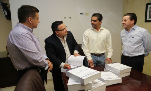 Hicieron entrega de la documentación y de un CD el subsecretario de Planeación del Desarrollo de la Oficialía Mayor del Gobierno del Estado, Saúl López Montiel y el subsecretario de Ingresos, Gerardo Encinas Urquídez. Atestiguó el acto el Oficial Mayor del Congreso del Estado, José Ángel Barrios García, quien colocó el sello de recibido.