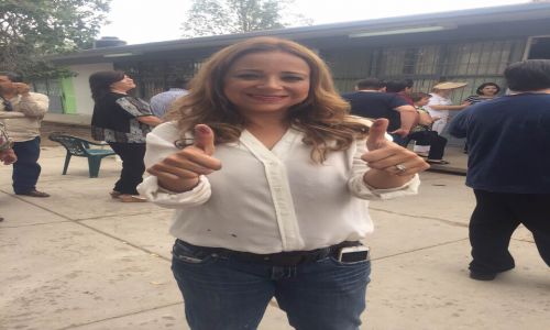 La candidata del PRI por el Distrito XII Hermosillo Sur, Flor Ayala, llegó acompañada de su familia a emitir su voto en la casilla ubicada en la colonia Prados del Centenario.