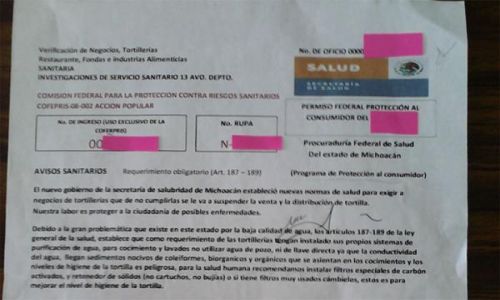 La Secretaría de Salud advierte sobre personas que, haciéndose pasar por verificadores sanitarios, acuden a establecimientos de servicios, tales como abarrotes o tiendas de autoservicio, cuya finalidad es la de extorsionar, ya que presentan firmas