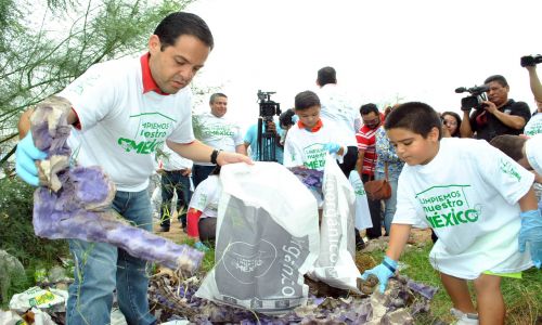 Acompañado de sus hijos Manuel y Daniel, el Presidente Municipal participó en la VI edición de la campaña nacional “Limpiemos Nuestro México”, que organizó TV Azteca, retirando basura y escombro en el sector norponiente de la ciudad.