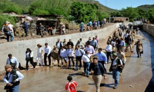 Guaymas, Sonora, octubre 08 de 2015.- la Gobernadora Claudia Pavlovich y la Secretaria de Desarrollo Agrario, Territorial y Urbano (SEDATU), Rosario Robles Berlanga, garantizaron apoyo total a las familias de Guaymas y Empalme, para reconstruir viviendas y ofrecer la posibilidad de reubicar a quienes se asentaron en lugares que son inseguros ante lluvias intensas y crecidas del arroyo.