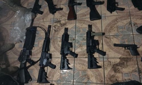 En el lugar se resguardaron 13 armas largas, un lanza granadas, un arma corta, cinco cargadores de disco, 13 radios portátiles, 3 mil 429 cartuchos útiles calibre .40 mm, 90 cartuchos para escopeta calibre 20, chalecos y uniformes, entre otros materiales, puestos a disposición de la PGR.