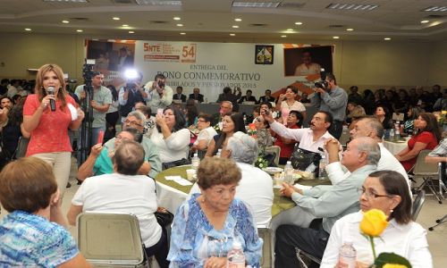 Al presidir la ceremonia de entrega del Bono Conmemorativo a jubilados y pensionados de la Sección 54 del SNTE, la Gobernadora Claudia Pavlovich reiteró su compromiso de fortalecer la educación de Sonora y contar escuelas dignas, maestros bien remunerados y capacitados, así como la mejor educación para los sonorenses.