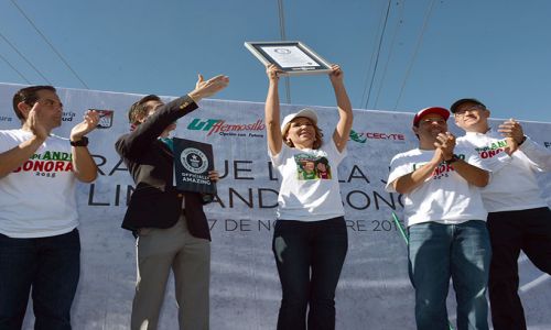 “Les pido que cada quien desde sus casas tome la responsabilidad de limpiar sus pedazos, banquetas y les aseguro que de hacerlo tendremos ciudades limpias y un estado que nos haga sentirnos más orgullosos de él. Le agradezco realmente a los jóvenes que se sumaron a esta gran causa y por eso los conminó a seguir trabajando, limpiando Sonora; me siento muy contenta de también haber obtenido ese récord guinnes aquí en Hermosillo, pero esto no debe quedar aquí sino de ir por más para nuestro estado”, externó.