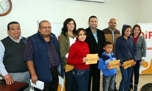 Hermosillo, Sonora; Diciembre 29 de 2015.- Conscientes de que la educación es la manera de forjar un futuro provechoso para los menores que hoy enfrentan dificultades económicas, DIF Hermosillo con el apoyo de DIF Sonora, entregó 45 becas escolares a estudiantes de primaria y secundaria.