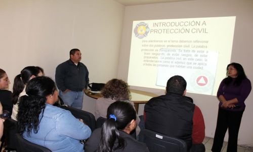 La capacitación fue impartida por elementos de Protección Civil, donde se desarrollaron varios temas, tales como introducción a la protección civil, uso y manejo de extintores, búsqueda de rescate, desalojo en inmuebles y primeros auxilios.