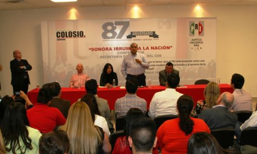 En el marco de la celebración del 87 aniversario del Partido Revolucionario Institucional, el Comité Directivo Estatal realizó la conferencia “Sonora irrumpe a la nación”, en la cual junto a historiadores, distintas generaciones priistas intercambiaron opiniones sobre los eventos que se generaron entorno al desconocimiento de la presidencia interina de Victoriano Huerta, por medio del histórico decreto número 122, redactado por el libre y soberano estado de Sonora el 5 de marzo de 1913.