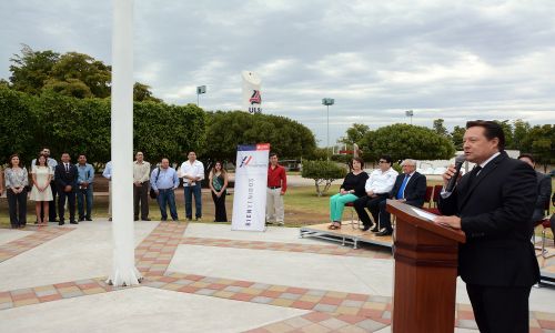 Al encabezar el izamiento del lábaro patrio en la Universidad La Salle Noroeste, el Presidente Municipal dijo que debido a la formación que ahí se imparte, los egresados de esta academia serán jóvenes de bien y comprometidos con el torno de su comunidad.