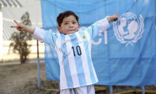 El niño afgano de cinco años de edad se convirtió en sensación en internet al hacerse viral su foto con una camiseta hecha de una bolsa de plástico azul y blanca, a la cual le puso el nombre de Messi y el número 10 que lleva en la selección argentina.