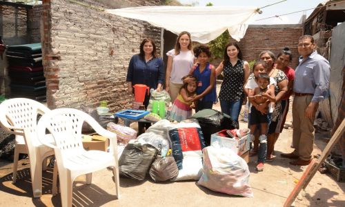 Ena Olea de Félix atendió personalmente a la señora Rosa, pues ella tiene nueve nietos a su cargo de los cuales se ha hecho responsable; ante tal situación la primera dama se trasladó al domicilio ubicado por la calle Begonia  en dicho asentamiento humano, donde entregó material para la reparación del techo de su casa como láminas galvanizadas, ropa para ella y sus niños; pañales, despensas, utensilios de cocina, sillas, colchonetas, cobijas, almohadas y demás enseres domésticos que donó el voluntariado de DIF Cajeme.