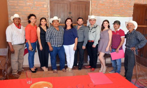 el gobernador tradicional de Loma de Guamúchil, Juan Mátuz González y David Zamudio, organizador de los juegos tradicionales entre otros integrantes del comité organizador además de las reinas entrante y saliente de las fiestas, Miranda Castelo Castro y Aranza Zagasta Navarro.