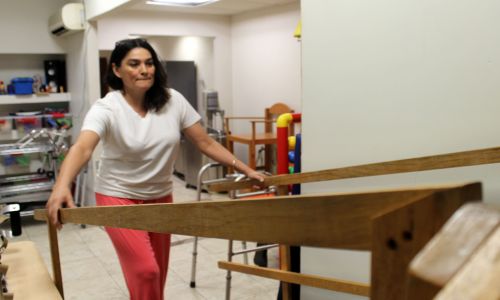 Luego de ser sometida a diversas operaciones, comenzó a acudir a las terapias en UBR desde el 2014 y gracias a su constancia de recibir atención 3 veces por semana en mecanoterapia, ahora la señora Mónica a partir de este año, puede caminar apoyada en una andadera y realizar pequeñas actividades en su hogar.