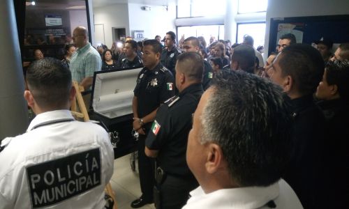 Tras la conclusión de la guardia de honor en las instalaciones de la Comandancia Zona Uno se trasladaron hasta el Panteón Municipal, donde descansarán los restos del agente que el pasado jueves fue asesinado en la colonia La Manga cuando se dirigía a cumplir con su turno de trabajo.
