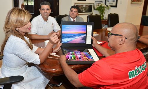 Durante el encuentro, Luis entregó a la Gobernadora Claudia Pavlovich Arellano los distintivos con la bandera mexicana con los que participó en las competencias y de parte de la mandataria recibió un reconocimiento y fotografías de paisajes sonorenses.