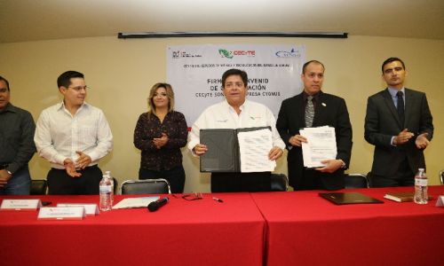 Esto al firmar un convenio de colaboración con la empresa CYGNUS, especializada en mecatrónica, la cual a partir de hoy permitirá que los alumnos del CECyTES realicen visitas guiadas a la compañía.