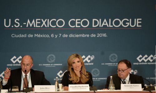 Ciudad de México, 8 de diciembre de 2016.- Impulsando posibles inversiones en la Megarregión Sonora-Arizona, la gobernadora Claudia Pavlovich Arellano presentó en el US México CEO Dialogue, los atractivos e intereses que ofrece la unión de fortalezas de ambos estados ante el mercado nacional e internacional.