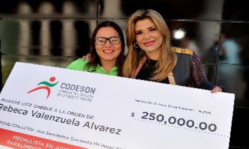 “Estoy muy contenta de entregarles a nombre del Gobierno del Estado y de los sonorenses este apoyo porque se lo merecen, han puesto el nombre de Sonora en alto, hicimos un gran esfuerzo por eso fue hasta últimas fechas para saber si íbamos a contar con el estímulo que ellos requieren”, expresó.
