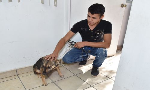 El joven Pedro Adrián González Valle decidió adoptar a la joven canina de talla mediana y asumió el compromiso de llevarla posteriormente al CACF para que sea esterilizada gratuitamente, como parte del esfuerzo del Ayuntamiento para combatir la sobrepoblación de perros y gatos en abandono y todos los problemas que ésta genera.