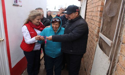 Después de entregar las llaves a la primera vivienda, el Presidente Municipal Héctor David Rubalcava Gastélum, se trasladó a otras casas de la colonia Ladrillera junto a Elly Sallard, donde entregaron ocho “Cuartos Rosa”.