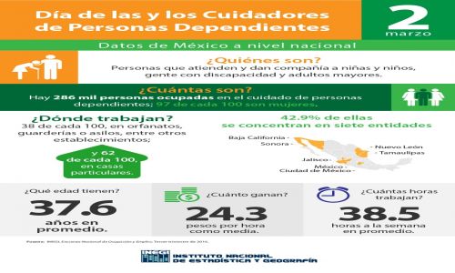 Este 2 de marzo se conmemoró en todo el país, el Día de las y los Cuidadores de Personas Dependientes y de acuerdo a datos proporcionados por el Instituto Nacional de Estadística y Geografía (INEGI), en México hay 286 mil personas ocupadas en el cuidado de personas dependientes.
