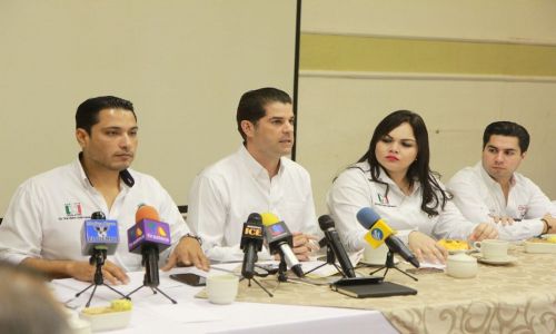 Los diputados por Obregón, Brenda Jaime, Omar Guillén y Emeterio Ochoa, y el coordinador del Grupo Parlamentario del PRI, Epifanio “Pano” Salido, encabezaron la conferencia.