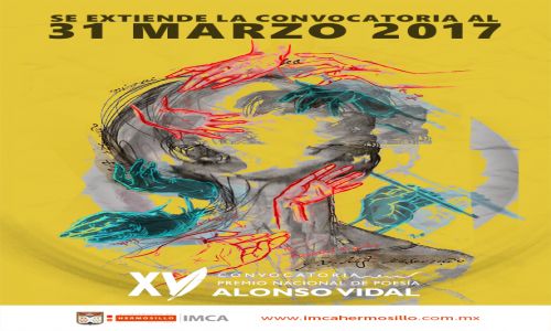 Hermosillo, Sonora; Marzo 14 de 2017.- El Instituto Municipal de Cultura y Arte (IMCA) extiende la convocatoria del XV Premio Nacional de Poesía Alonso Vidal hasta el próximo viernes 31 de marzo, con el objetivo de brindar mayor oportunidad a todos los interesados.