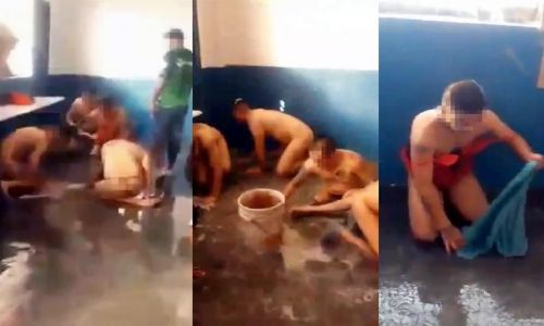 Un video difundido en redes sociales muestra cómo presuntos reos del penal de Topo Chico son humillados y golpeados por otros convictos, quienes los obligan a vestir lencería de mujer y lavar los pisos de la prisión, en Nuevo León.