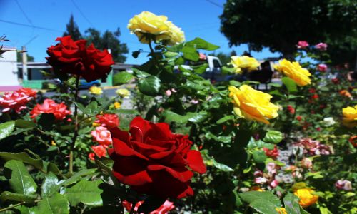 Con la intención de aportar un toque alegre y colorido a los mencionados jardines, se plantaron 2 mil 500 rosales, de los cuales el 90% lograron florecer, debido entre otras cosas al saqueo y el maltrato ocasionado por personas inconscientes del daño provocado.