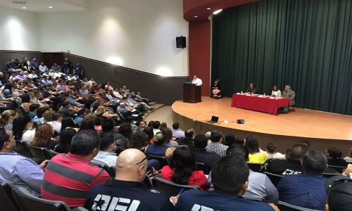 Hermosillo, Sonora, mayo 8 de 2017.-En un auditorio abarrotado, el titular de la Fiscalía General de Justicia del Estado (FGJE), Rodolfo Montes de Oca Mena, dio por inaugurado el primer módulo “Fase de Investigación Inicial en el Procedimiento Penal Acusatorio”, dirigido a personal de la institución.